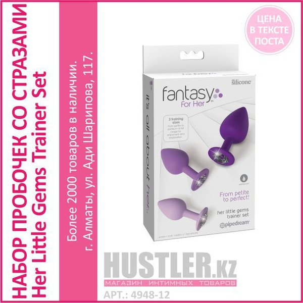 Набор Fantasy For Her Little Gems из трех анальных пробочек в нежных фиолетовых оттенках. Каждый из плагов имеет каплевидную форму, облегчающую введение, а в основании пробки украшены блестящим кристаллом. Игрушки хорошо подходят для подготовки к анальному сексу, в качестве украшения и для сужения вагины во время классического полового акта. Разнообразьте ощущения и интимную жизнь этим универсальным набором! Цена набора: 19 700 тг. (актуальна на момент публикации) г.Алматы, ул. Шарипова, 117 г.Алматы, ул. Розыбакиева, 247, ЖК Вавилон, блок 8… — Читать дальше
