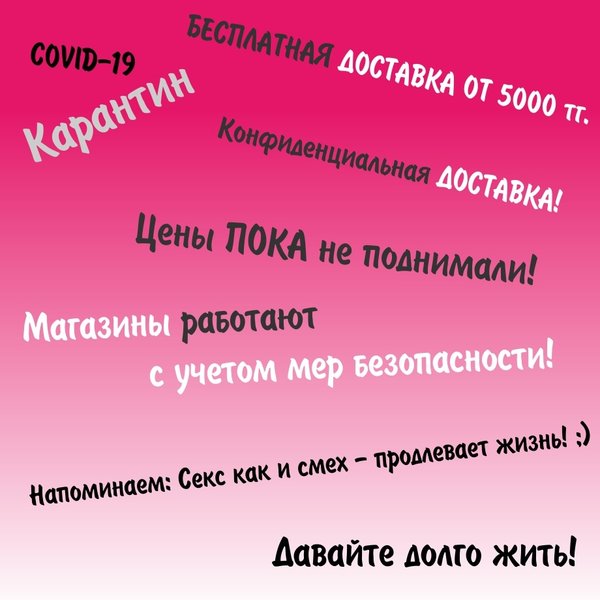 Мы продолжаем работать, и всегда рядом с Вами! Хоть карантин и спутал все планы . У нас большое и долгожданное поступление товара и мы рады будем доставить заказ в любое удобное время! Что же было в этом поступлении? всеми любимые смазки и очистители от System JO и HOT гели-стимуляторы пролонгаторы качественные и стильные БДСМ-аксессуары …и многое другое Заходи к нам на сайт, выбирай. Есть вопросы? Наши менеджеры с радостью ответят по Whatsapp или по телефону! Закажи сейчас: