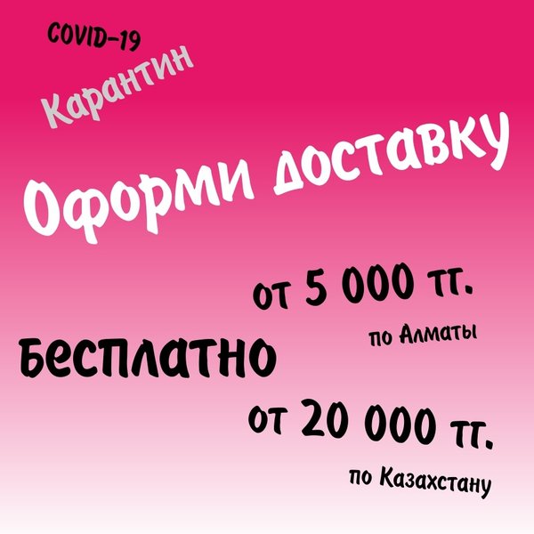 трая, безопасная, конфиденциальная доставка Бесплатная доставка по Алматы от 5000 Бесплатная доставка по Казахстану от 20 000 Кэшбек на 10% от каждой покупки ⠀