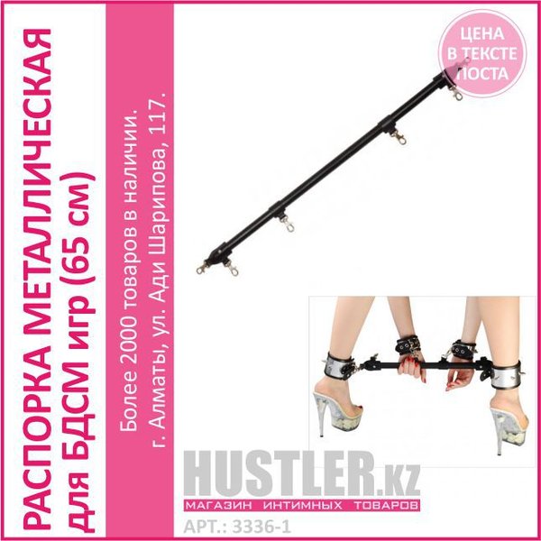 Минимум движений – максимум власти! Удобная и легкая штанга для горячих БДСМ-игр. На специальные крепления можно зафиксировать руки и ноги партнера, заключенные в наручники и наножники. Собрать полный комплект можно в нашем магазине. Особенно хороши коллекции BDSM-арсенал, в которых можно выбрать легкие и стильные аксессуары или брутальные и супер-крепкие фиксации для любого уровня фетиш-игр! Цена распорки: 10 900 тг. (актуальна на момент публикации) г.Алматы, ул. Шарипова, 117 г.Алматы, ул. Розыбакиева, 247, ЖК Вавилон, блок 8, 3 этаж⠀ … — Читать дальше