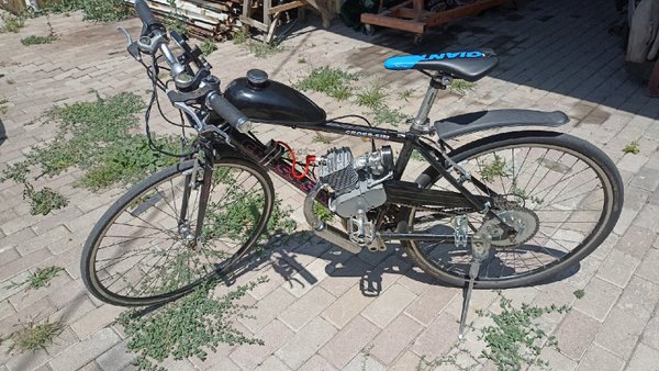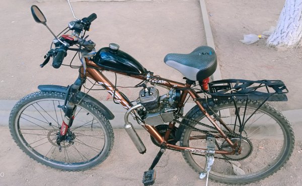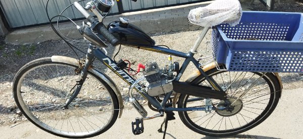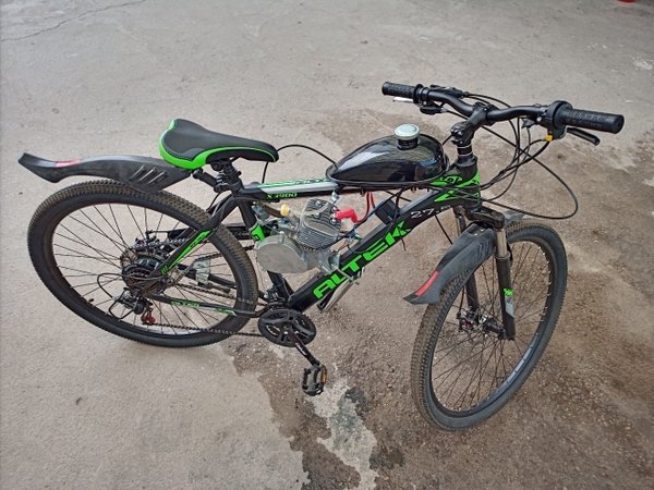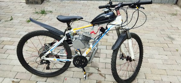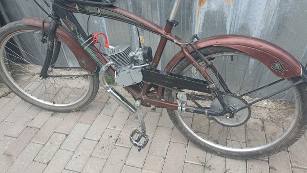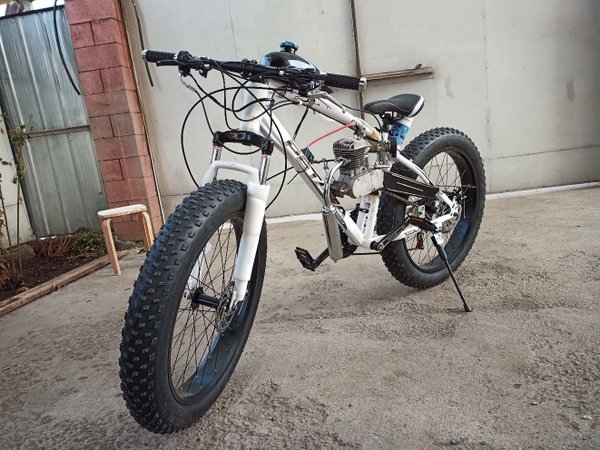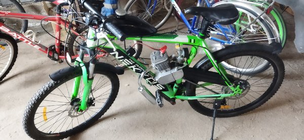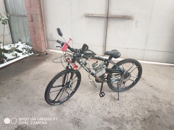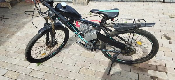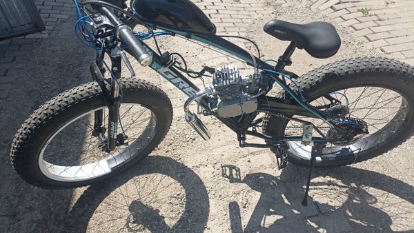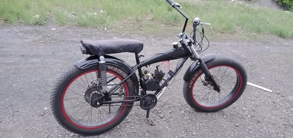 Сначала выложим это здесь. Продаются понты:) Цена вопроса 200000тг. Велосипед б/у но не сильно (на таких толком не гоняют, только красуются), состояние очень даже боевое. Двигатель разумеется новый.