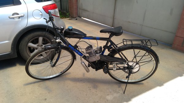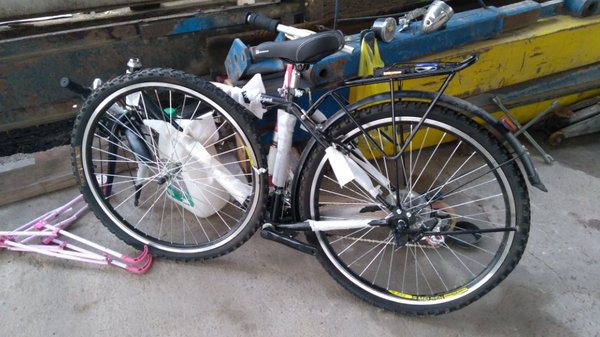 Помните этого арлекина? Руки до него таки дошли. Божечки, он офигенный. Моторизация ему к лицу. Меня, бугая 100кг возит с ветерком и с конкретным таким запасом прочности и мощности. Тащусь.