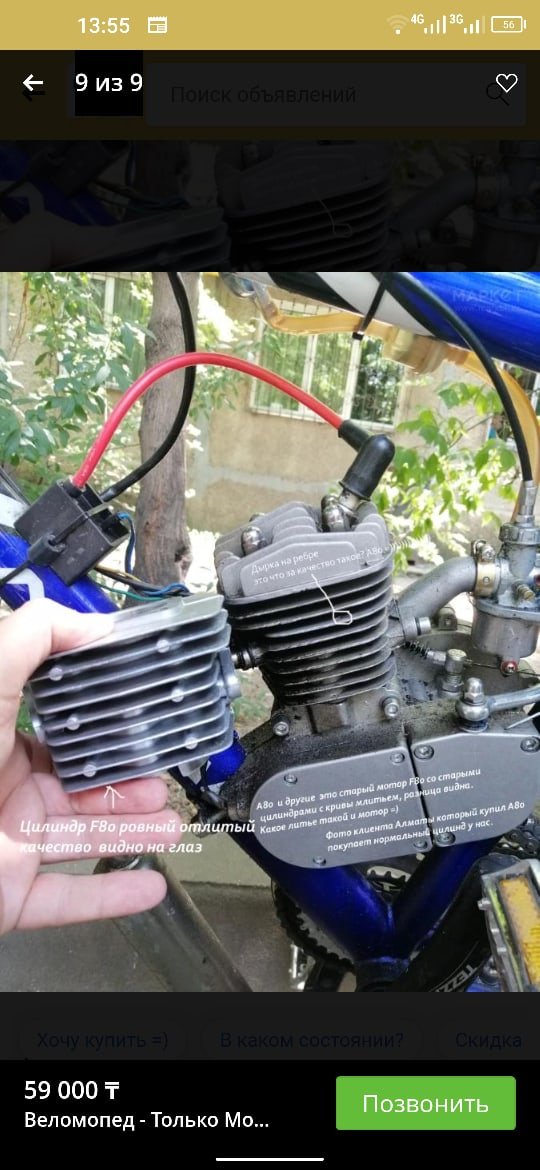 аход. Сам двигатель работает без лишних шумов и тряски. Кстати по поводу вибрации. Наш двигатель не пытается разобрать вибрируя, велосипед на малекулы. Он безусловно ощущается своей работой. Но в сравнении с кооперативными небо и земля. Кооперативный мотор не спасает усиленный крепеж, вырывает с мясом. Вибрации такие что не выдерживают сварные швы рамы. После поездки на таком вибромассажёре у водителя немеют руки и промежность.