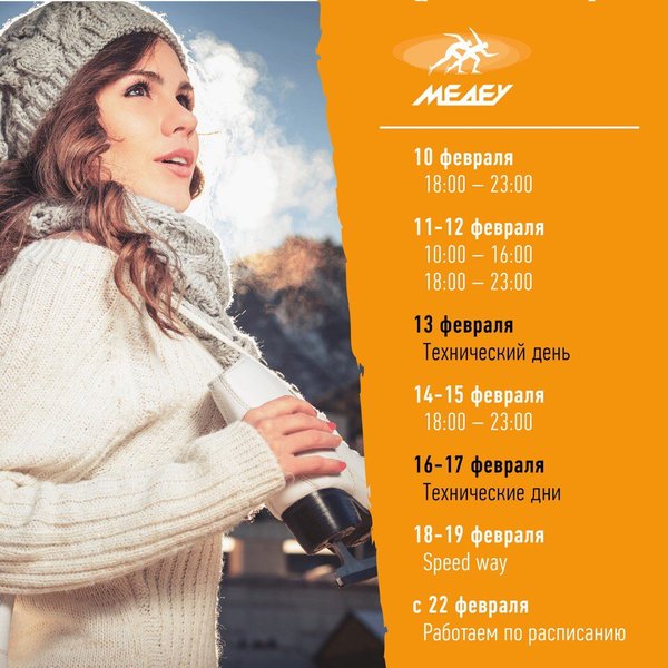 Добрый день дорогие друзья! Ждем Вас 10 февраля на вечернее катание, каток Медеу вновь начинает работать. В связи с этим мы утраиваем акцию первым 20 счастливчикам прокат абсолютно БЕСПЛАТНО!!! Мы ждём Вас. 2 918 500, 2 960777 или или VK