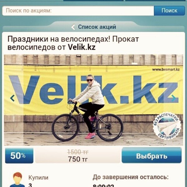 Успейте приобрести дисконтные карты на покупки и прокат в Velik.kz