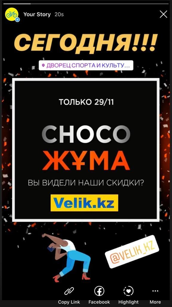 в подарок Купон распечатывать необязательно, достаточно сообщить его номер Купон действителен до 29 декабря 2019 г. (Включительно) ⠀ Выбирайте понравившиеся товары на сайте velik.kz — приобретайте нужный купон на Chocolife.me — и покупайте товары в нашем магазине со скидкой до 50%!!!. Наш адрес: г.Алматы, проспект Абая 44, уг.ул. Байтурсынова, Дворец спорта им. Балуана Шолака. Вся информация по телефонам:,
