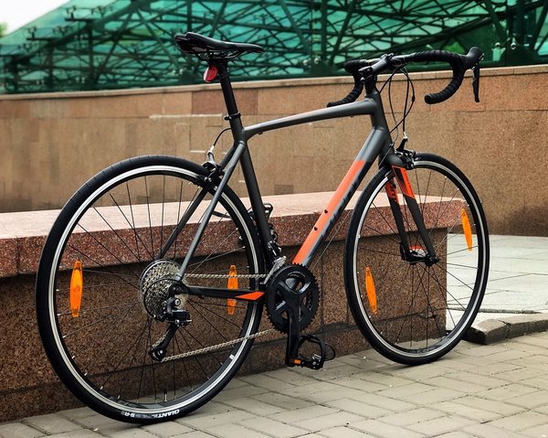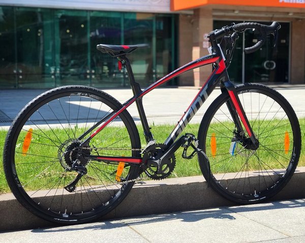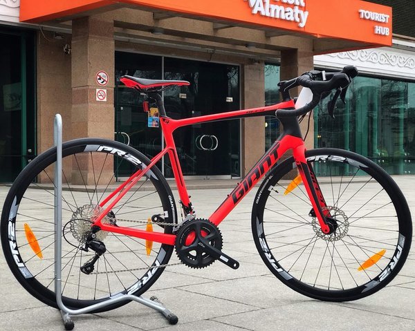 у для хорошей или не очень хорошей дороги.. Продуманное и удобное спортивное седло Giant Connect Forward разработано специально для шоссейных велосипедов. Качественная и точно сбалансированная система FSA Omega, 32/48. Пол: Мужской Кол-во скоростей: 18 Передний переключатель: Shimano Sora Задний переключатель: Shimano Sora Размер колеса: 28 Тип вилки: Жесткая (карбон) Материал рамы: Алюминий Тип тормозов: Механический дисковый. Цена: 359900 тенге.. Наш адрес: Дворец спорта им. Балуана Шолака, пр. Абая 44 (уг.ул. Байтурсынова) Мы делаем доставку «до двери» во все города РК. Возможны варианты покупки в кредит или в рассрочку через @kaspi.kz.