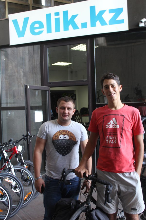 КРУГОСВЕТКА на ВЕЛОСИПЕДЕ! Сегодня (7 сентября) в гостях в Velik.kz побывал велопутешественник Мэт. Он выехал из дома (г. Мадрид, Испания) 12 августа 2014 г. Он проехал Францию, заехал в Англию, опять Францию, а далее море в Сицилию, потом Италию, Австрию, Польшу, Сербию, Боснию, Хорватию, Македонию, Албанию, Грецию, Турцию, Грузию, Азербайджан, пересек Каспий и далее по территории Казахстана: Актау, Актобе, Шымкент, Алматы — заехал к нам купить камеру. Камерами мы его снабдили, сделали сервис велосипеда. В прошлом году он закончил университет… — Читать дальше