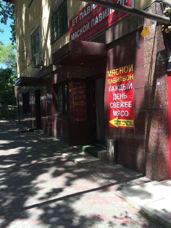 Мясной магазин в Алмалинском районе располагается по адресу Казахстан, Алматы, Ади Шарипова, 72.