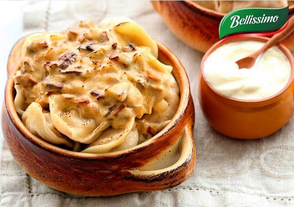 ПЕЛЬМЕНИ В ГОРШОЧКЕ В СМЕТАНЕ Пельмени @bellissimo.kz — 500 г, сливочное масло — 2 ст. п., сметана — 200 г, специи: молотый черный перец и соль по вкусу. Готовим так: Пельмени отварить до полу готовности в соленой воде. Выложить на тарелку. В горшочки положить пельмени, добавить сливочное масло, перемешать. В сметану всыпать специи, перемешать, залить пельмени. Накрыть горшочки крышками, поставить блюдо в горячую духовку на 15 минут. #