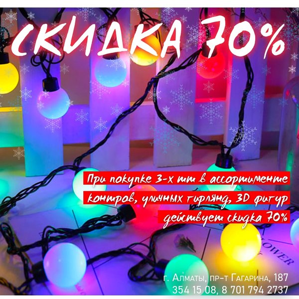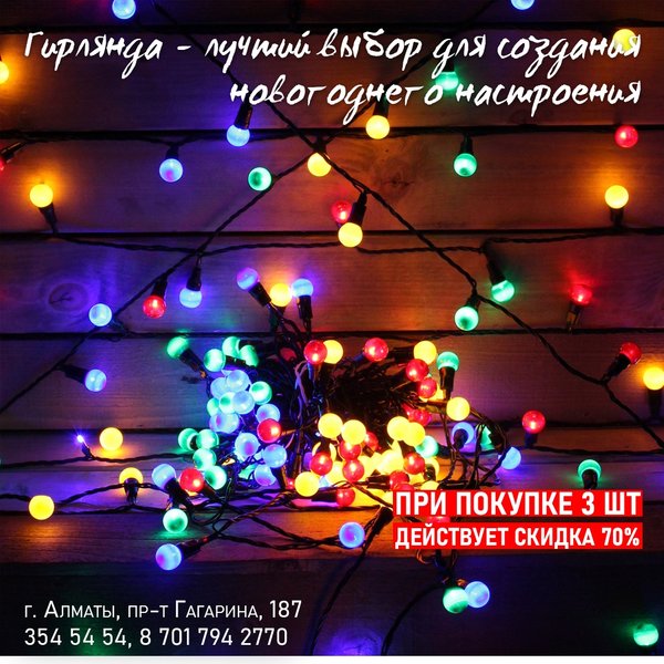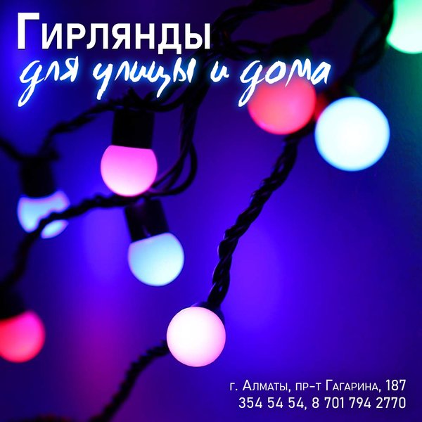 уют для украшения зданий и растений. ⠀⠀⠀⠀⠀⠀⠀⠀⠀⠀⠀⠀⠀⠀⠀⠀ Главные достоинства светодиодных гирлянд для улиц: * Морозоустойчивость. Морозостойкая светодиодная гирлянда для улиц может прослужить достаточно долго и стоит понимать, что именно такой тип используется в зимнее время для создания уличных декораций. * Пластиковая поверхность. Благодаря имеющейся пластиковой поверхности их можно использовать на улице. Устойчивая к воздействию влаги светодиодная гирлянда для улиц не будет портиться и ломаться из-за воздействия окружающей среды. * Экономичны. Светодиоды могут потреблять не большое количество энергии. * Яркое свечение. Из-за этого фактора, многие покупатели и приобретают светодиодные гирлянды для улиц, так как свечение светодиодов видно издали. * Большой срок службы. ⠀⠀⠀⠀⠀⠀⠀⠀⠀⠀⠀⠀⠀⠀⠀⠀ В нашем магазине вы можете приобрести гирлянды для улицы по цене: 2 400 тг — зеленая / красная / синяя 2 520 тг — трехцветная ⠀⠀⠀⠀⠀⠀⠀⠀⠀⠀⠀⠀⠀⠀⠀⠀⠀ Алматы, пр-т Гагарина 187 (выше ул. Утепова, справа)