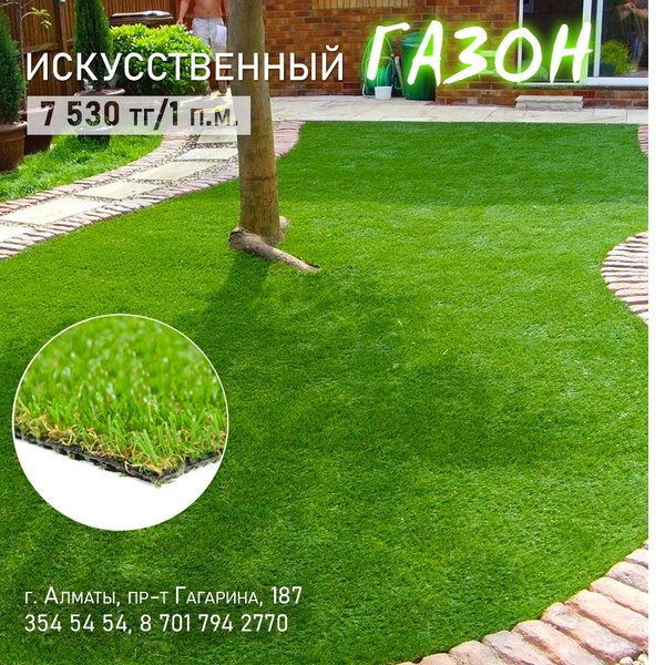 вытаптывается, так как не может выдержать повышенные нагрузки без потери своей декоративности, а бетонные или прочие поверхности не всегда уместны. ⠀⠀⠀⠀⠀⠀⠀⠀⠀⠀⠀⠀⠀⠀⠀ В таких случаях выручают искусственные газоны. Их можно постелить возле бассейнов, на спортивных и детских площадках, патио или во внутренних двориках, где в течение дня мало света, и нет условий для природного роста растений. ⠀⠀⠀⠀⠀⠀⠀⠀⠀⠀⠀⠀⠀⠀⠀ В нашем Садовом центре вы можете приобрести искусственный декоративный газон метражом по цене 7 530 тенге за п.м. (ширина 2,5 м). Также доступны коврики из искусственного декоративного газона по цене 2500 тенге. ⠀⠀⠀⠀⠀⠀⠀⠀⠀⠀⠀⠀⠀⠀⠀ Алматы, пр-т Гагарина 187 (выше ул. Утепова, справа)