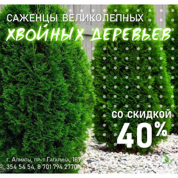Скидки на хвойные растения еще действуют. Успейте купить выгодно! ⠀⠀⠀⠀⠀⠀⠀⠀⠀⠀⠀⠀⠀⠀⠀ Алматы, пр-т Гагарина 187 (выше ул. Утепова, справа)