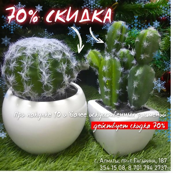 гостиницах, а также для оформления праздников. ⠀⠀⠀⠀⠀⠀⠀⠀⠀⠀⠀⠀⠀⠀⠀⠀⠀ Кроме своих декоративных качеств, искусственные растения порадуют своей привлекательной ценой. ⠀⠀⠀⠀⠀⠀⠀⠀⠀⠀⠀⠀⠀⠀⠀⠀⠀ В нашем магазине вы можете приобрести искусственные растения по цене от 180 тенге. ⠀⠀⠀⠀⠀⠀⠀⠀⠀⠀⠀⠀⠀⠀⠀⠀⠀ Ждем вас в нашем Садовом центре! ⠀⠀⠀⠀⠀⠀⠀⠀⠀⠀⠀⠀⠀⠀⠀⠀⠀ Алматы, пр-т Гагарина 187 (выше ул. Утепова, справа)
