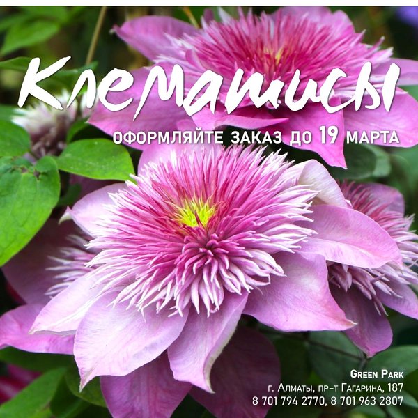 Клематис — очаровательное растение, которое станет украшением участка и предметом гордости каждого садовода. Длинные лианы, радующие глаз разнообразными цветами и оттенками – разве это не чудо? ⠀⠀⠀⠀⠀⠀⠀⠀⠀ Чтобы оформить заказ на клематисы — обращайтесь к @greenparkalmaty Звоните в рабочее время по телефонам, ⠀⠀⠀⠀⠀⠀⠀⠀⠀⠀⠀ Green Park Алматы, пр-т Гагарина 187 (выше ул. Утепова, справа)