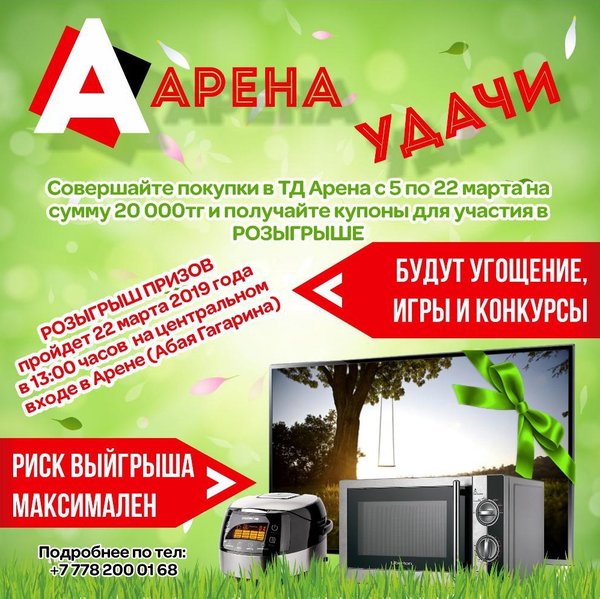 Reposted from @tdarena.almaty — Торговому Дому «Арена » 45 лет! А вы верите в знаки, числа и судьбу? Мы верим! Ровно 45 лет назад, 19 июля тоже выпало на пятницу А ещё в городе Алматы, впервые торговый дом проводит благотворительную ярмарку еды на своей площадке Мы ждём всех и каждого на нашем празднике ️ . Все покупатели имеют возможность заполнить анкету и забросить её в барабан, для участия в розыгрыше призов: Smart TV, пылесос, смартфон Номер на двоих в гостинице «Казахстан» Завтраки на двоих в Noodles cafe Ланчи на двоих в Noodles ca… — Читать дальше