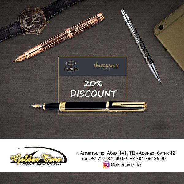 Уважаемые Друзья и Покупатели! Весь Май действует скидка 20% на ручки Parker и Waterman!