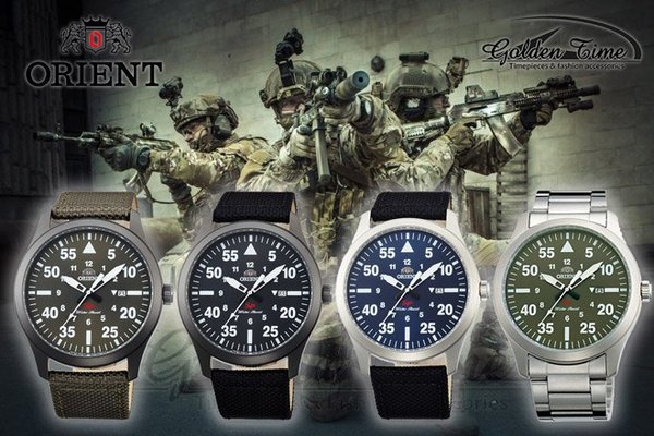 Новое поступление часов Orient military! Уважаемые покупатели! Представляем Вашему вниманию новинки от японского бренда Orient в стиле Military. Часы имеют оригинальный циферблат с акцентом на минутные значения. Корпус из нержавеющей стали. Представлены как на браслете, так и на текстильном ремешке.