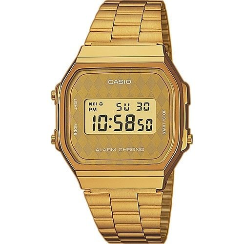 Сочетание черного браслета с золотым корпусом плюс еще и инверсионный тип отображения индексов делает классическую винтажную модель Casio почти шедевром. Кстати самым дорогим из винтажной линейки, представленной в нашем магазине. Количество ограничено. Просто не упустите.