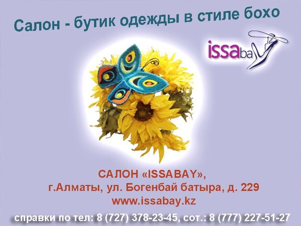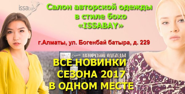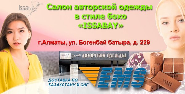 Салон авторской одежды в стиле БОХО (boho style) «ISSABAY» в Алмате (Казахстан, Алматы, ул.Богенбай батыра, 229). Действует интернет-магазин