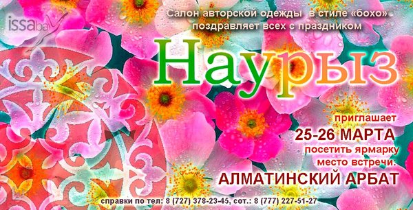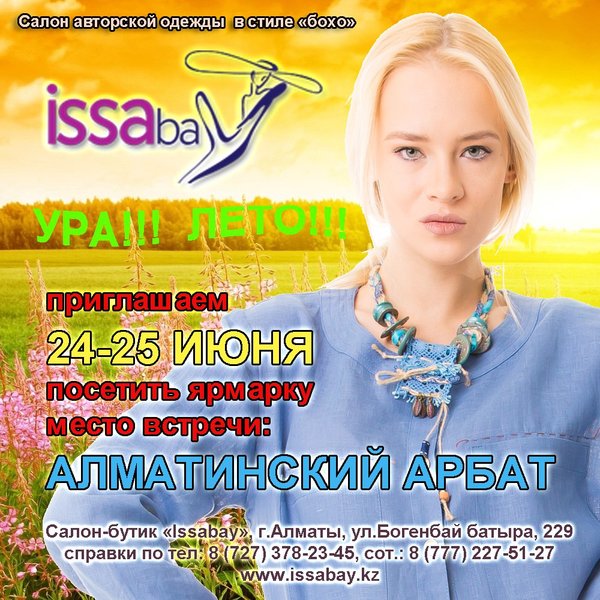 Хотим еще раз напомнить, что в эти выходные мы ждем Вас на ярмарке на «Алматинском Арбате» или в нашем Салоне бохо «ISSABAY».