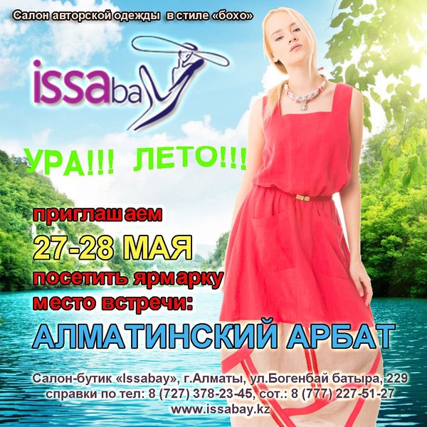 Встречаем лето вместе с нами — летняя коллекция одежды в стиле бохо от салона-бутика ISSABAY. Ждем Вас на ярмарке на Алматинском Арбате 27—28 мая 2017 г.