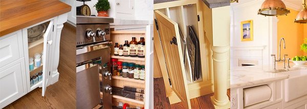 В любой кухне необходимо место для хранения различных мелочей. Предлагаем Вам несколько интересных идей хитрых кухонных шкафов -