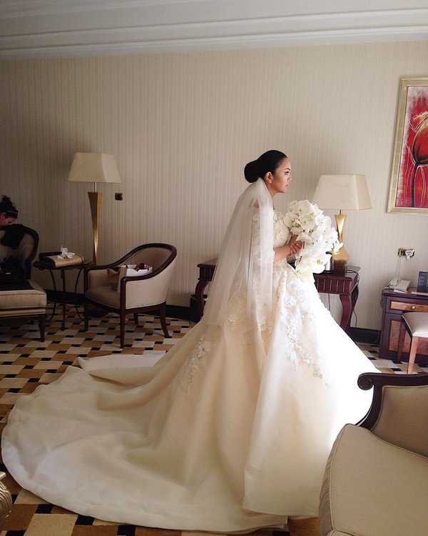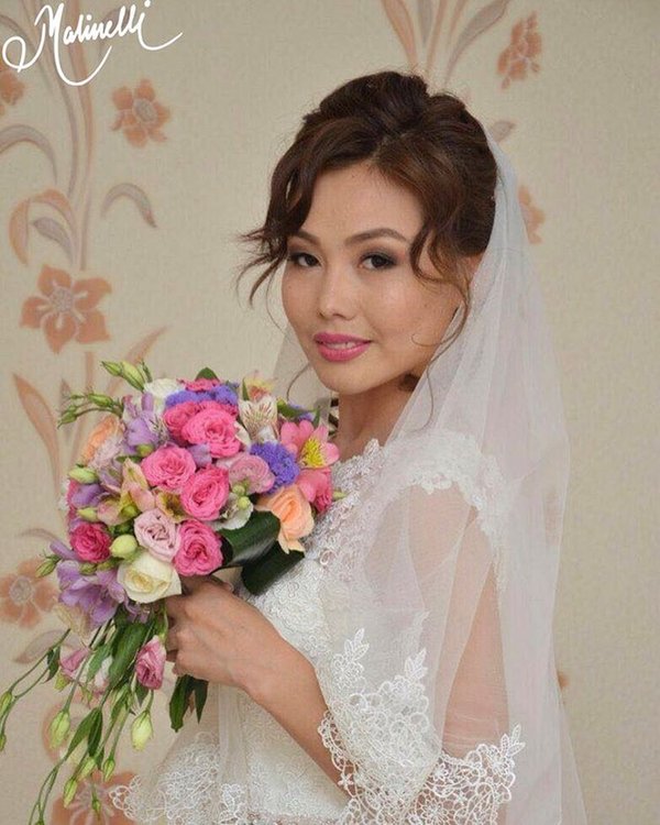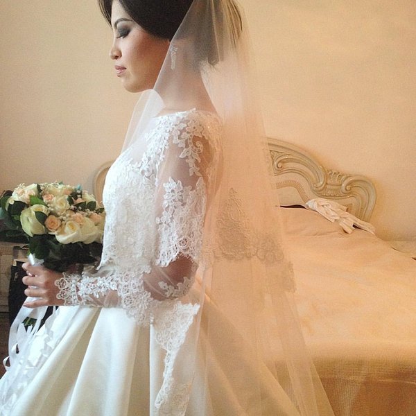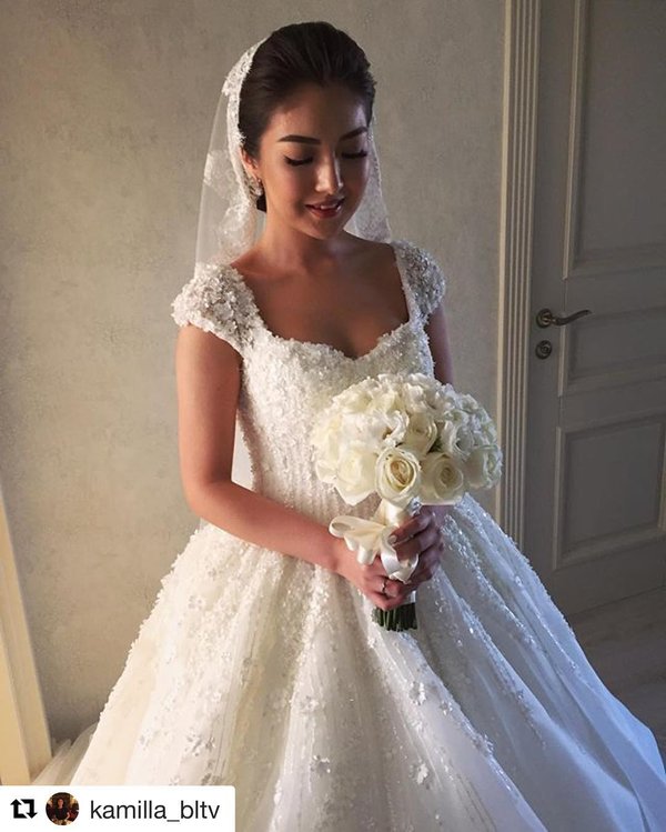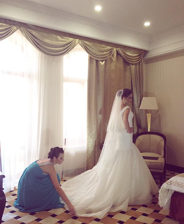 Динара Богубаева (11.10.2015): Наша красавица Тогжан в день своей свадьбы в платье и фате от бутика Malinelli Royal Tulip Almaty
