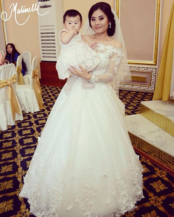 Наверняка все видели милые фотографии, где малыши и взрослые одеты очень похоже. Вот такой свадебный вариант нежности получился у нашей невесты. Мы верим, что малышка на руках у прекрасной Зарифы вырастет и тоже сможет почувствовать себя настоящей принцессой в образе от Malinelli.