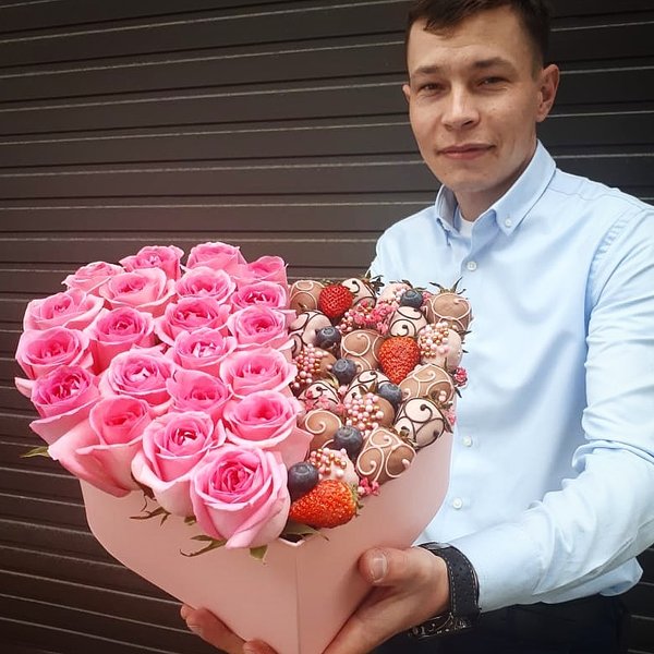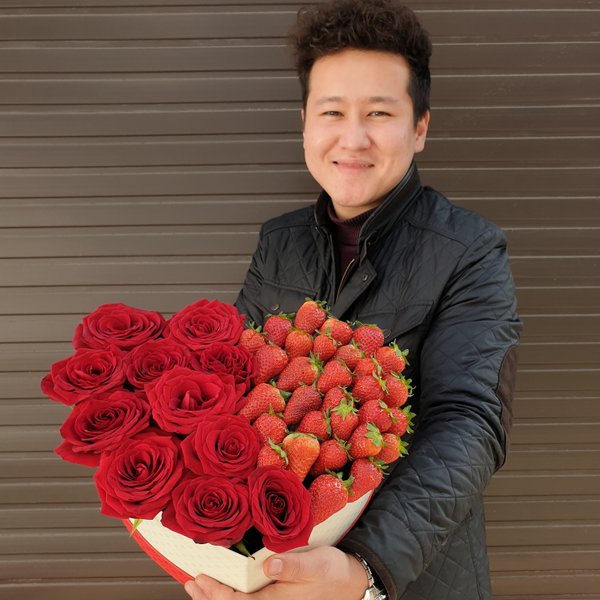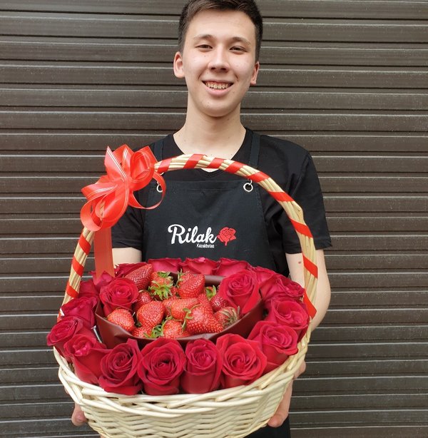 Розы и клубника Букет: корзина с розами и клубникой Сорт: Фридом Высота букета: корзина Оформление: корзина Цена: 12000тг Флорист: @bilisbekov.boka Заказ по номеру: