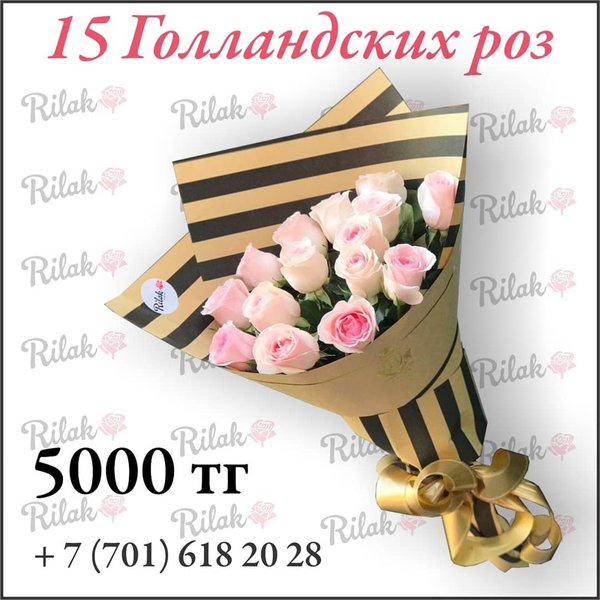 Шикарные букеты из ГОЛЛАНДСКИХ РОЗ По самым ВКУСНЫМ ЦЕНАМ 15 ГОЛЛАНДСКИХ РОЗ = 5000ТГ 25 ГОЛЛАНДСКИХ РОЗ = 8000ТГ 51 ГОЛЛАНДСКАЯ РОЗА = 15000ТГ 101 ГОЛЛАНДСКАЯ РОЗА = 27000ТГ Доставка по городу 1000тг НАШ АДРЕС: ЖИБЕК ЖОЛЫ 115А (Бутик RILAK) Заказ по номеру: Дарите радость вместе с нами