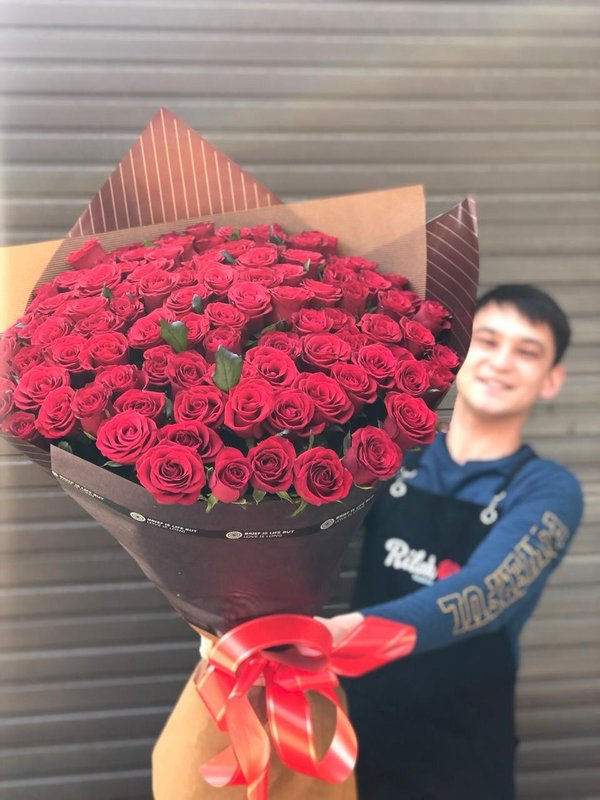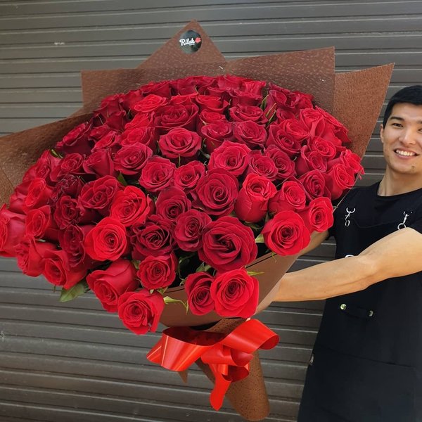 Букет: 101 роза Сорт розы: Red Paris Высота букета: 80см Оформление: кожа Цена: 28000тг Флорист: @a_mzb Заказ по номеру: