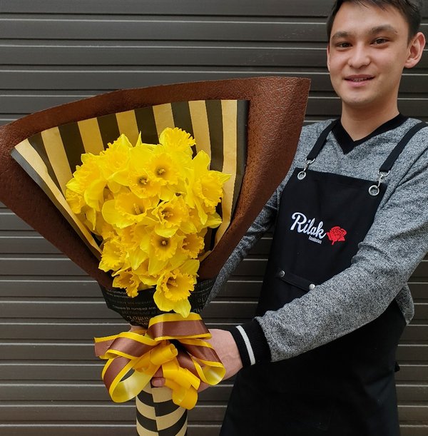 Нарциссы Букет: 25 нарциссов Высота букета: 50см Оформление: полосатый Крафт, кожа, матовая салфетка Цена: 5000тг Флорист: @bilisbekov.boka Заказ по номеру: