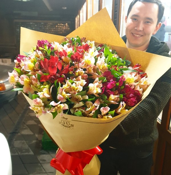 С роскошным букетом из Альстремерии отправляемся на доставку в городе Алматы ЦЕНА БУКЕТА: 15000тг всем приятного вечера и отличного настроения