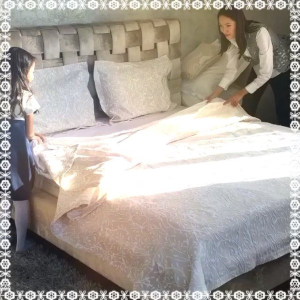 Зная с каким трудом производится качественное белье,я всегда восторгаюсь правильно подобранной тканью,сочетанием цвета,деталей и кружева. Ведь на белье котором спите,вы набираете силу и энергию через сон который связывязан с космосом… ________________________________ На фото постельное белье На двуспальную кровать из 100% xлопок-сатин с отделкой из нежного кружева.