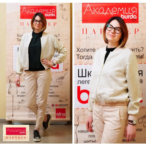 всё-таки требуется больше времени! Да и шьем мы для удовольствия, а не для скоростных рекордов)! Есть в программе обучения Академии Burda Минск и более полный курс «Пошив куртки-бомбера» рассчитанный на 6 занятий, который предусматривает изучение технологии пошива куртки более высокого уровня сложности. В мае мы хотим предложить Вам «золотую середину»)) – экспресс курс из 3-х занятий! А выбор за Вами)!