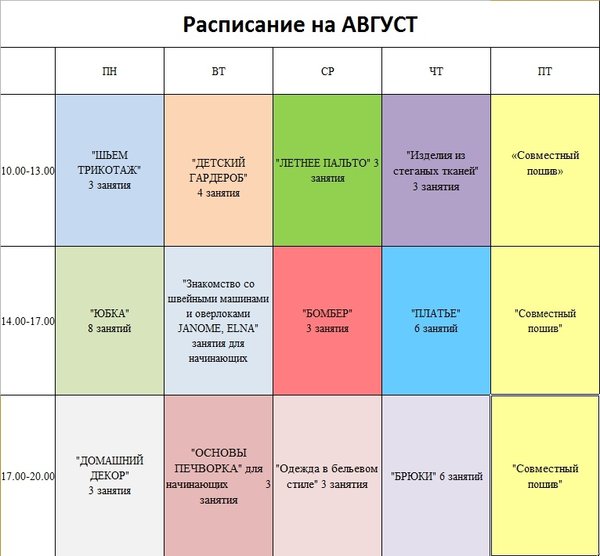 Друзья! Расписание на Август! Открыт набор во все группы! Тема мастер-классов определяется по количеству заявок! С удовольствием рассмотрим и Ваши предложения! Ждем Ваших звонков и сообщений!