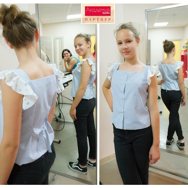 Последние деньки лета радуют нас теплом, Доминика окончила курс шитья «Юные модницы» и ей есть, что написать в сочинении «Как я провела лето». Она успеет еще выгулять свою обновку во дворе, в парке, или даже сходить в театр. В 12 лет освоить шитье Топа, юбки и бомбера — это круто. Приглашаем девушек от 12 и старше в группы на занятия по кройке и шитью.