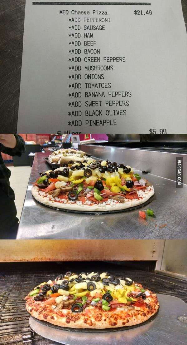 Парень по пьяни заказал пиццу со всеми ингредиентами