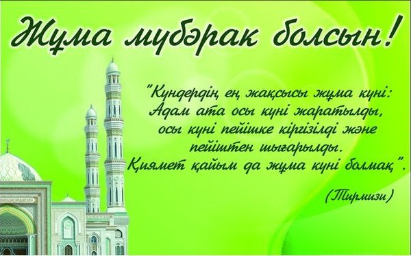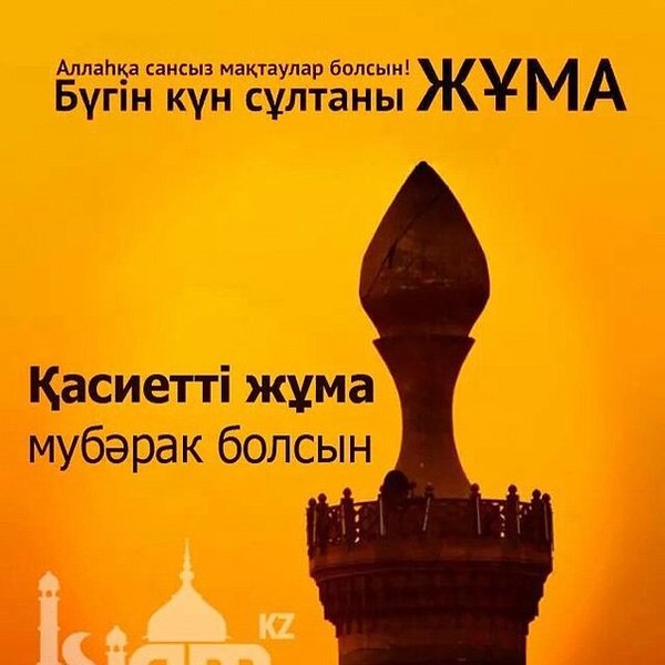 Жүрекке шуақ шашқан Иман гүлі, Қорғайды адамдарды ойдан түрлі. Күндердің Сұлтаны боп саналатын. Дұғалар қабыл болсын Жұма күнгі!!! Қасиетті Жұма Мүбәрак болсын, Алла Тағала Отбасыңызға амандық, Деніңізге саулық. Кәсібіңізге, Жұмысыңызға берекетін берсін. ӘМИН!