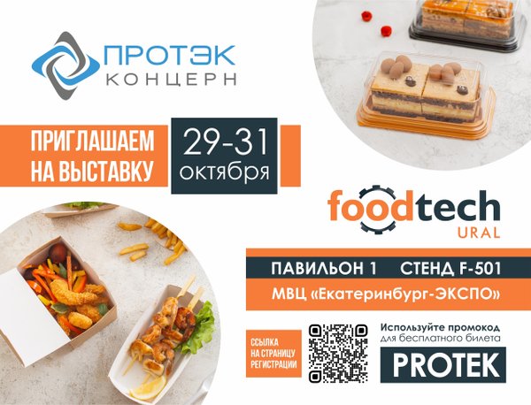 можете ознакомиться с нашими автоматическими, полуавтоматическими и ручными запайщиками, лотками, крафтовой упаковкой, влаговпитывающими салфетками, пищевыми добавками и пленками. Не упустите возможность получить бесплатный билет. Для его получения, пожалуйста, используйте наш промокод — Protek. Обратите внимание, что регистр букв в промокоде имеет значение. Зарегистрироваться и получить бесплатный билет можно по ссылке: Посещение нашего стенда — это отличная возможность узнать больше о нашей компании, наших продуктах и услугах, а также о том, как мы можем способствовать развитию и успеху вашего бизнеса. Мы с нетерпением ждем встречи с вами и надеемся на продуктивное сотрудничество. С наилучшими пожеланиями, Ваши друзья из Концерна Протэк