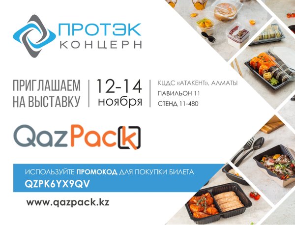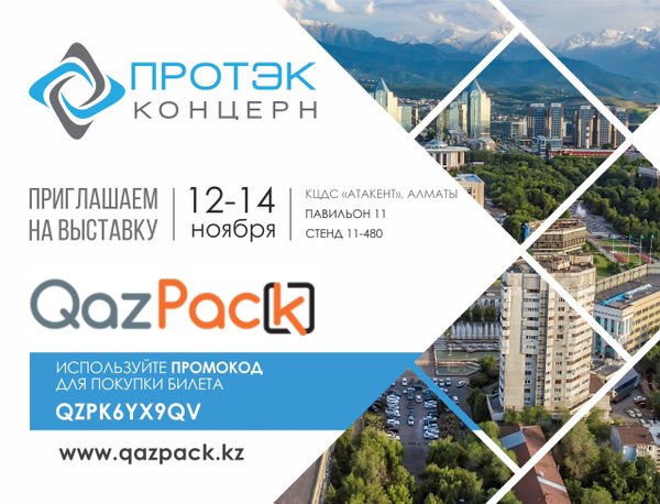 Уважаемые партнёры, уже завтра мы встречаемся с вами на международной выставке QazPack 2025 в Алматы! 12–14 ноября КЦДС «Атакент», павильон 11, стенд № 11—480 На стенде Холдинга ПРОТЭК вы сможете познакомиться с нашими современными упаковочными решениями и новинками производства Получите бесплатный билет по промокоду: QZPK6YX9QV До встречи завтра! Обсудим новые идеи, тренды и решения для вашего бизнеса!