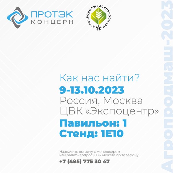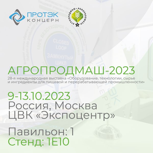 Вот и прошел насыщенный первый день выставки «Агропродмаш-2023». Концерн ПРОТЭК – один из лидеров в производстве комплексных упаковочных решений для предприятий пищевой промышленности – всегда следит за новинками и тенденциями. Посетите наш стенд (1E10, Павильон № 1), где вы сможете увидеть автоматические, полуавтоматические и ручные запайщики, лотки для запайки, ленты для термоформования и многое другое. Регистрируйтесь по ссылке и получите бесплатный билет прямо сейчас:. Мы с радостью расскажем вам о наших возможностях и о том, как мы можем п… — Читать дальше