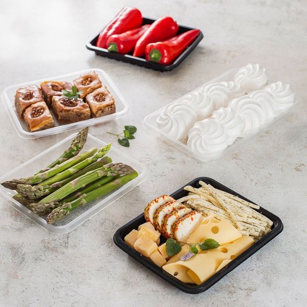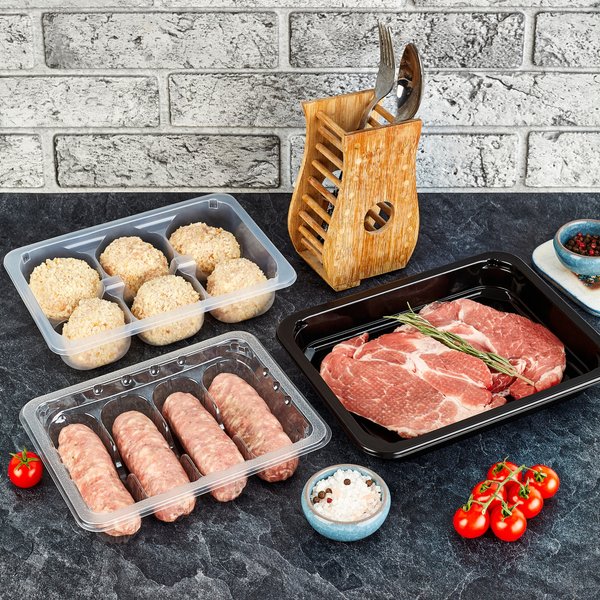азогрева); ️ Отличная жёсткость и форма — не деформируется при транспортировке; ️ Гладкие края — идеальное прилегание плёнки при запайке. Размеры: от 187х137х63 ️ Материал: PP (5) Совместим с большинством стандартных запаечных машин.
