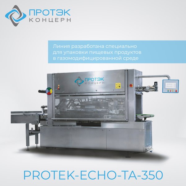 дителей. Это обеспечивает возможность быстро переключаться на лотки и пленки с разным составом. PROTEK-ECHO-TA-350 специально разработан для упаковки пищевых продуктов в газомодифицированной среде. Среди преимуществ данной модели можно выделить высокую производительность, простоту использования и обслуживания, возможность упаковки лотков разных размеров, легкость замены форм, автоматический контроль параметров вакуумирования и газонаполнения, доступность комплектующих и расходных материалов, а также привлекательную цену. Мы предлагаем выгодные условия сотрудничества. При заключении договора на поставку линии, мы готовы полностью взять на себя обслуживание: поставлять лотки, пленки для запайки, контролировать качество выпускаемой продукции, оперативно выполнять текущий ремонт или экстренно выезжать при необходимости, проводить плановые осмотры и техническое обслуживание. Рассматриваем возможности предоставления рассрочек, лизинга, отсрочек платежа и фиксации цен в рублях без учета курса или переплат. Для заказа оборудования, отправьте заявку на нашу почту zayavka@protekgroup.com или свяжитесь с нами через сообщения.