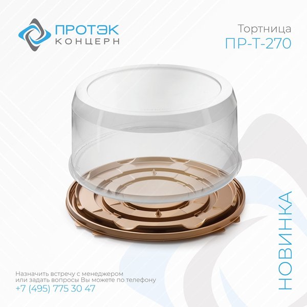 70 мм и 130 мм — чтобы идеально подходить для тортов любого размера. Стандартные цвета дна — золотой и чёрный — придают упаковке дополнительный стиль и делают ваши изделия ещё более привлекательными для покупателей. Выбор дна для тортницы зависит от ваших предпочтений: можно выбрать гладкое дно или дно с шипами. Шипы на дне обеспечивают стабильность торта и предохраняют его от смещения во время транспортировки. Применение дна с шипами позволяет избежать необходимости использования дополнительных подложек, что сокращает затраты на упаковочные материалы и упрощает упаковку. Выбрав тортницу ПР-Т-270, вы гарантируете, что ваши торты будут не только вкусными, но и презентабельными в любое время. Позвольте вашим кондитерским изделиям засиять во всей красе и остаться такими же ароматными, как и при их создании, с нашей новейшей упаковкой для тортов! Реклама. Рекламодатель ООО «Холдинг Протэк», erid=2Vtzqxm97Zs