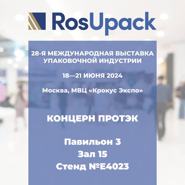 бизнеса. Наша дружная команда экспертов будет счастлива поделиться с вами своими знаниями и опытом, а также с удовольствием ответит на все интересующие вас вопросы. Вы сможете найти нас по следующим координатам: Павильон — 3 Зал — 15 Стенд — E4023 Выставка RosUpack 2024 — это уникальный шанс завести новых друзей и деловых партнеров, укрепить существующие теплые отношения и открыть для себя новые горизонты в индустрии упаковки. Мы от всей души приглашаем вас заглянуть к нам на стенд, чтобы лично убедиться в преимуществах дружбы и сотрудничества с Концерном Протэк и обсудить перспективы нашего взаимовыгодного партнерства. Мы с нетерпением ждем теплой встречи с вами на RosUpack 2024! С наилучшими пожеланиями, Ваши друзья из Концерна Протэк
