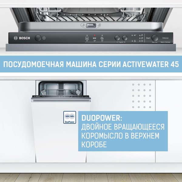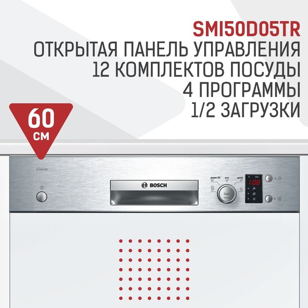 Встраиваемая посудомоечная машина с открытой панелью управления BOSCH Модель: SMI50D05TR03E8 Код товара: 200 27 038/2 . Открытая панель управления 12 комплектов посуды 4 программы 2 дополнительные функции: VarioSpeed и 1/2 загрузки 4 температурных режима Электронное управление Цифровой дисплей Аква-Сенсор Датчик загрузки Таймер на 1—24 часа Индикатор отсутствия соли Индикатор отсутствия ополаскивателя Защита от протечек AquaStop Система самоочистки фильтра Блокировка панели управления Уровень шума: 46 дБ … — Читать дальше