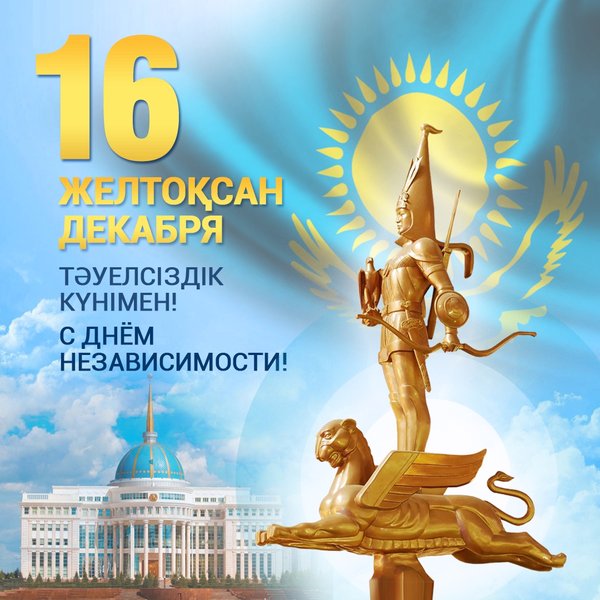 Тәуелсіздік Күнімен! С Днём Независимости! _____________________________________________ График работы: 16—17 декабря — праздничные дни 18 декабря — рабочий день
