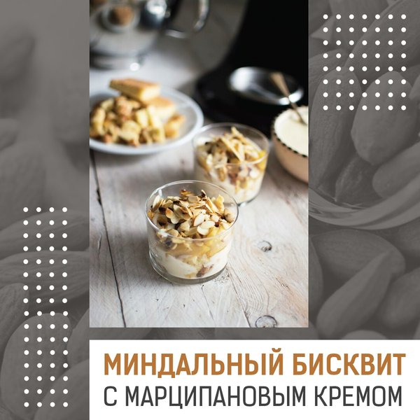 ками миндаля Приготовление: . Нагрейте духовку до 175 °С. Отделите желтки от белков. Взбейте белки с солью до плотной пены. В другой чаше взбейте желтки с сахаром и ванильным экстрактом до однородного белого цвета. Добавьте миндаль и разрыхлитель, перемешайте до однородности. Постепенно влейте белки. Перемешайте до однородности, но недолго, чтобы белки не опали. Покройте форму для выпечки кондитерским пергаментом и заполните тестом. Выпекайте около 30 минут, чтобы верх пирога стал золотисто-коричневым. Аккуратно выньте пирог из формы и поставьте охлаждаться. Для крема подогрейте сливки и молоко в небольшой кастрюле. Взбейте в отдельной посуде желтки с сахаром до однородного белого цвета. Соедините взбитую массу с теплой смесью молока и сливок в кастрюле. Готовьте, помешивая на медленном огне до загустения. Снимите крем с огня, добавьте раскрошенную марципановую массу и пробейте блендером до однородного состояния. Очистите яблоки от кожуры, удалите семена и нарежьте тонкими дольками. Растопите масло в сковороде, слегка обжарьте яблоки, посыпьте сахаром и запеките до золотистого цвета. Для подачи: нарежьте бисквит небольшими кусочками, сверху положите яблоки и полейте кремом. Сверху десерт посыпьте миндальными дольками.. Приятного аппетита!.